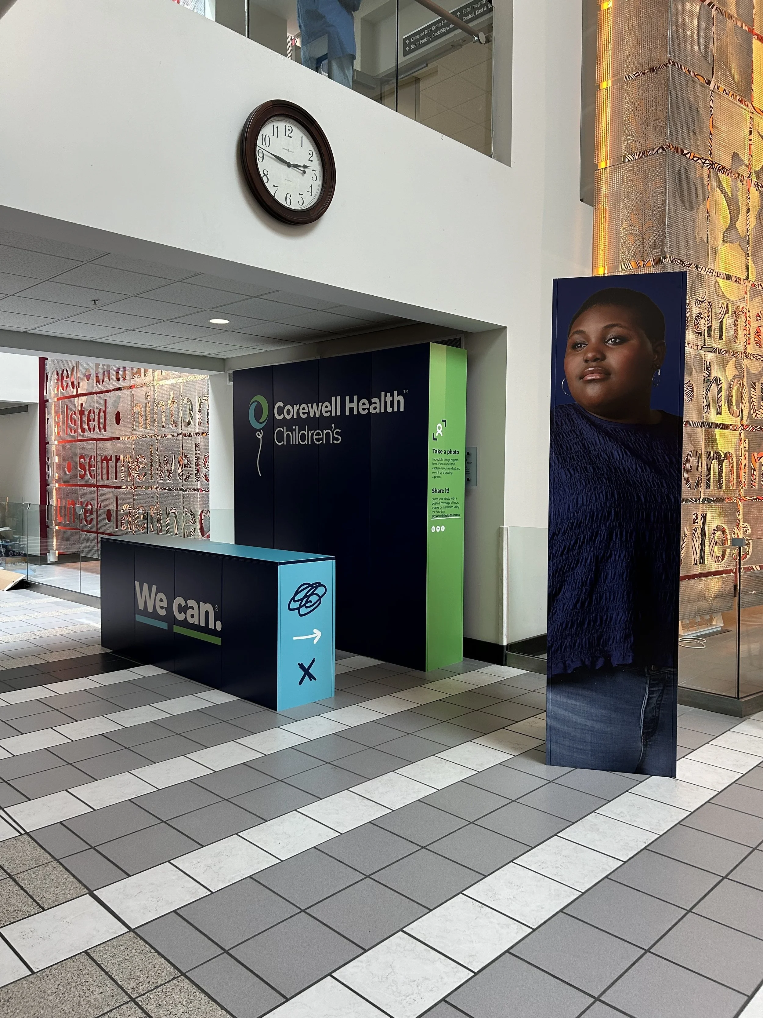Brightformat was proud to support a powerful brand activation at Corewell Health Children’s, designed by the talented team at Baas Creative. The installation celebrated the strength and resilience of young patients and their families while highlighting the care and expertise that define the Corewell experience.